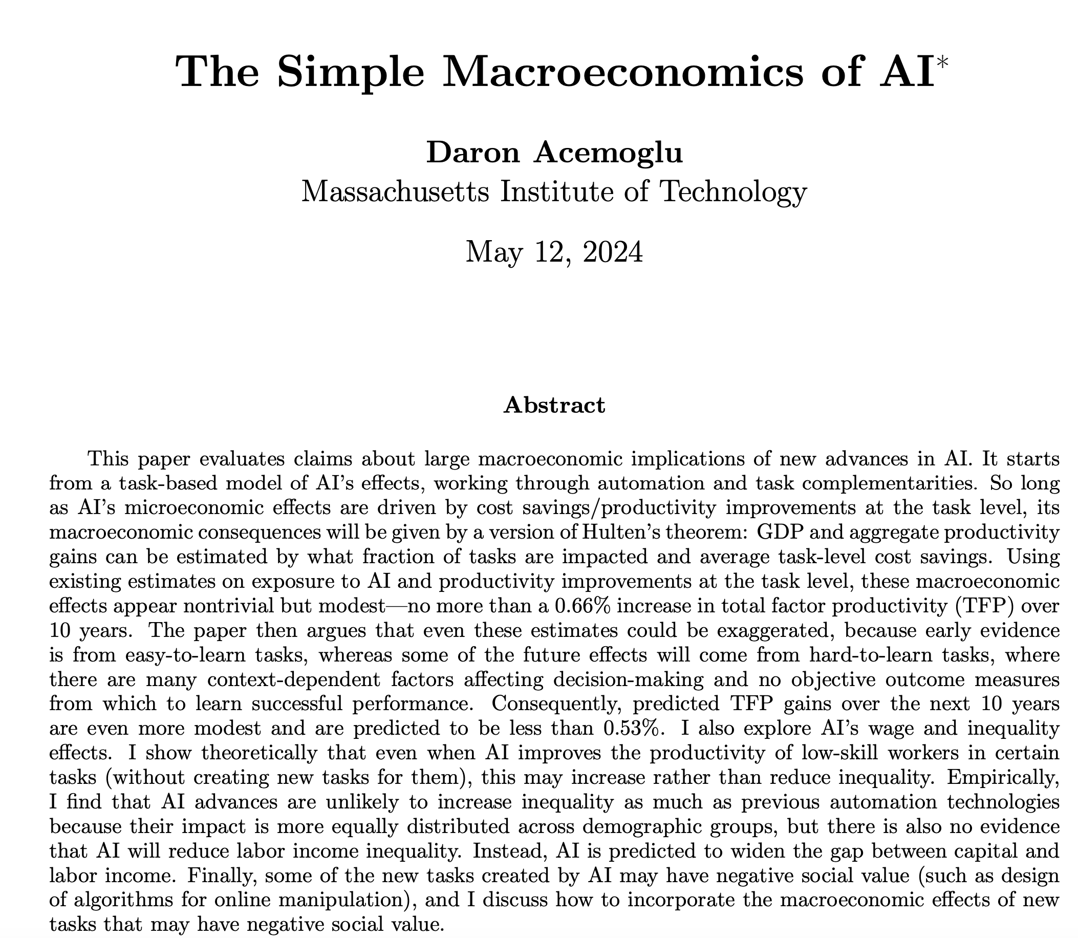 Acemoglu: The Simple Macroeconomics of AI